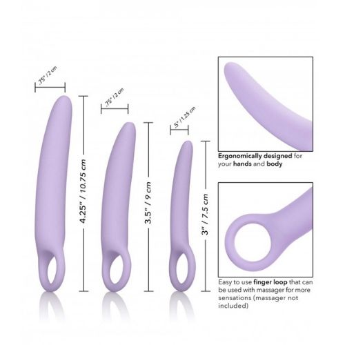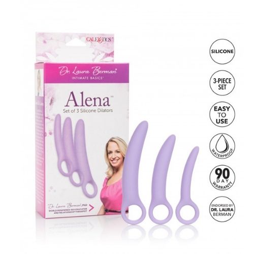 Alena dilator sæt i 3 dele til kontinuerlig bækkenbundstræning. Alle dilatorer er med en fingerring for greb. Fremstillet i kropssikker silikone