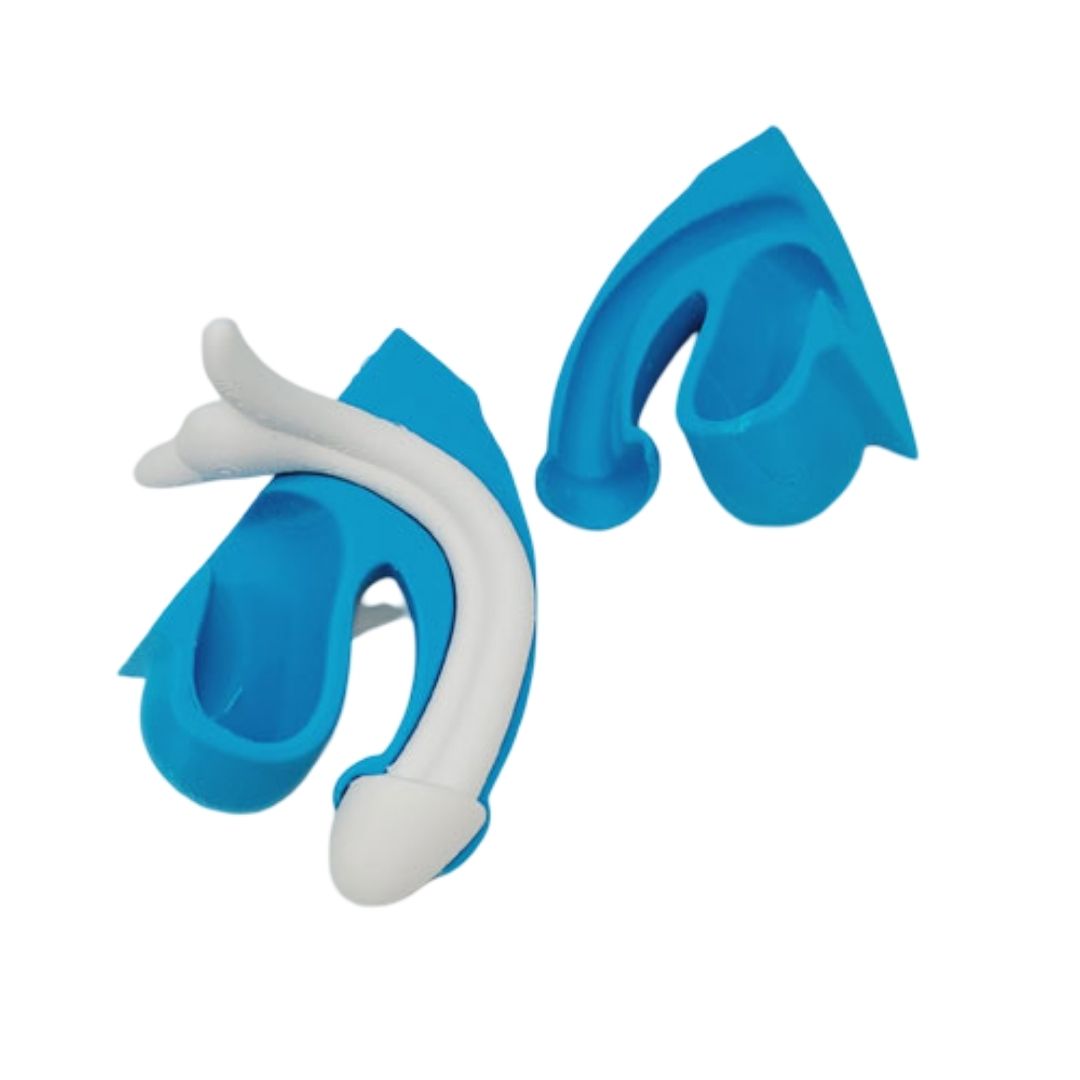 Er 3D printet i et blødt og stadig stærkt materiale Farverne blå og hvid gør modellen ekstra tydelig.