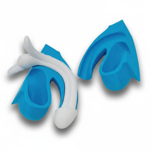 Penis med pung og tilbagetrukket forhud fremstillet i 3D print. Materialet er et forholdsvis blødt og stadig stærkt materiale